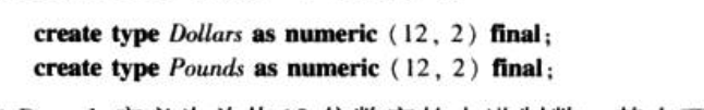 SQL提供了独特类型。可以用create type子句来定义新类型,如下: