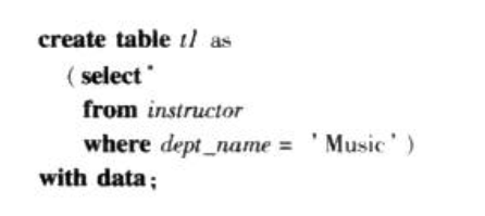 上述语句创建了一个与instructor具有相同模式的新表temp_instructor。