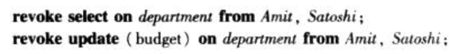下面的grant语句授予用户Amit和Satoshi在department关系的budget属性上的更新权限: