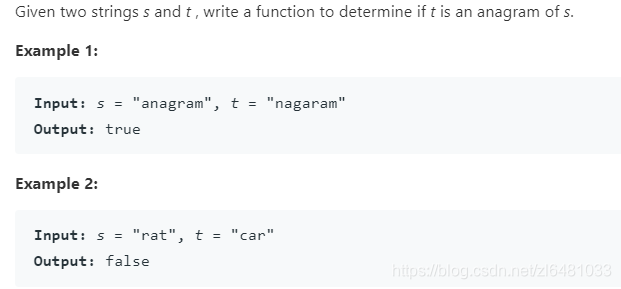 给定两个字符串 s 和 t ,编写一个函数来判断 t 是否是 s 的一个字母异位词。