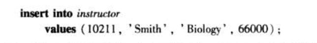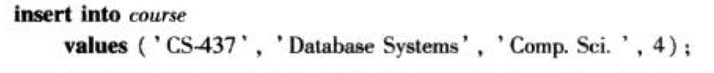 一个新创建的关系最初是空的,可以使用inset命令将数据加载到关系中,例如下图,值被给出的顺序应该遵循对应关系属性在关系模型中列出的顺序。