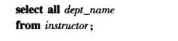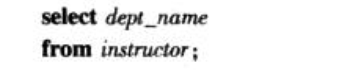 现在考虑另一个查询,找出所有教师所在的系名。可以写成