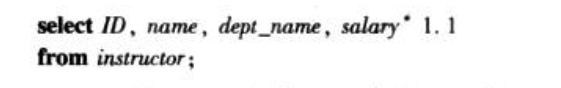 返回一个和instructor一样的关系,只是属性salary是原来的1.1倍。