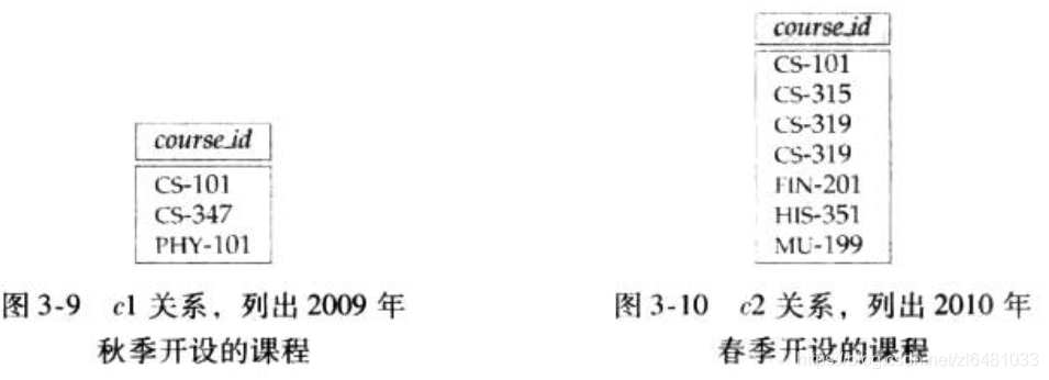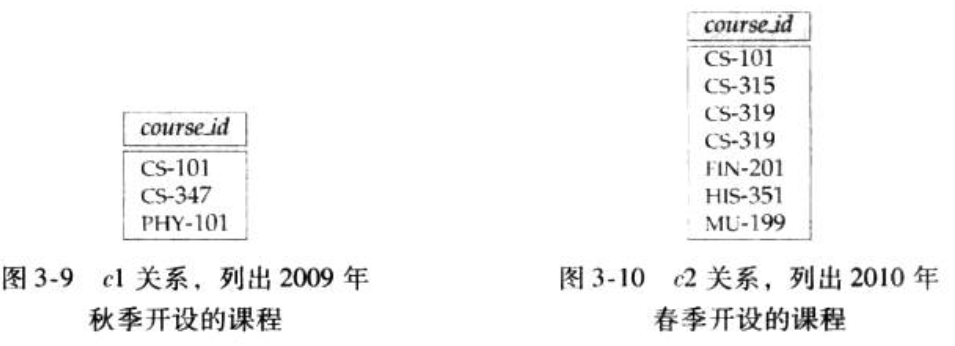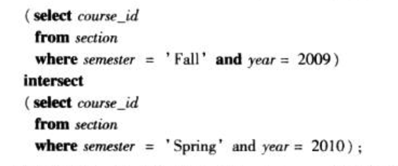 找出2009秋季和2010春季同时开课的所有课程的集合。如下: