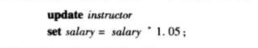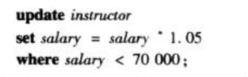 有些情况下,我们可能希望在不改变整个元组的情况下改变其部分属性的值。为了达到这一目的,可以使用update数据与使用insert、delect类似,待更新的元组可以用查询语句找到。