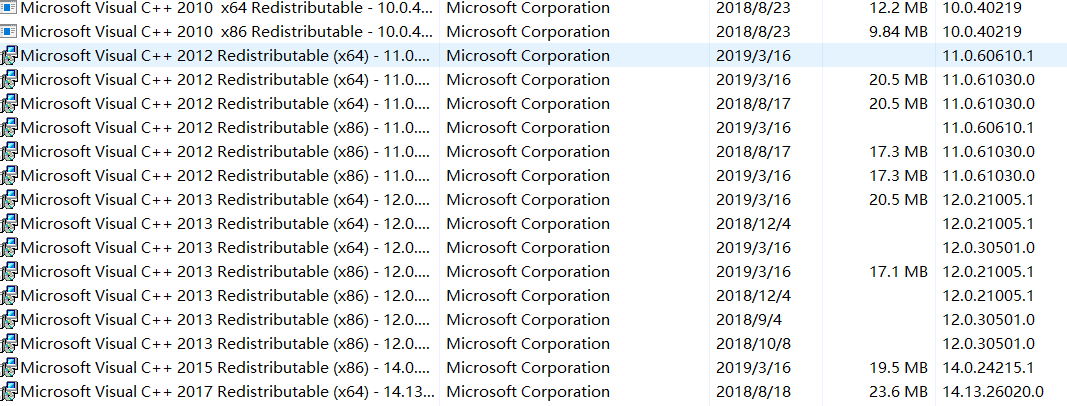 就这些东西,找到你缺失的是哪个版本,然后先删除掉已经有的。然后可以从微软官网下载他提供的组件,或者在网上找刚才删除的组件重新下载安装。