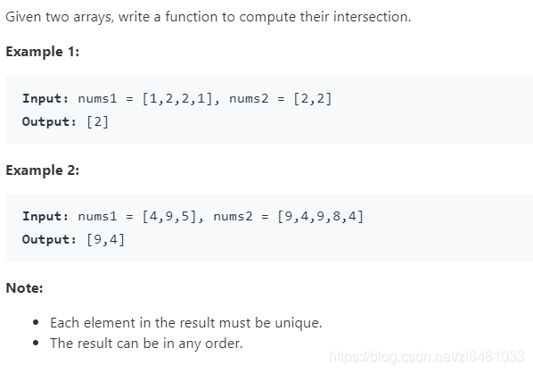 leetcode【数组】-----349. Intersection of Two Arrays(两个数组的交集)