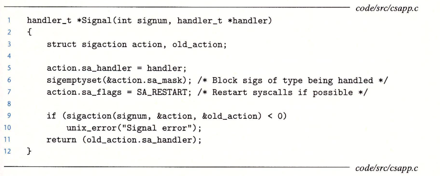 Posix标准定义了一个sigaction函数,允许用户设置信号处理时,明确指定他们想要的信号处理语句。