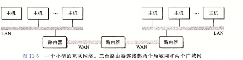 在层次更高的网络中,多个不兼容的局域网可以通过叫做路由器的特殊计算机连接起来,组成一个互联网络(internet)。每台路由器对于它所连结到每个网络都有一个适配器,路由器也能连接高速点对点电话连接,这是称为WAN(广域网)的网络示例。一般而言路由器可以用来由各种局域网和广域网构建互联网络。