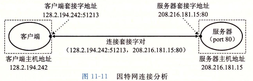 一个连接是由它两端的套接字地址唯一确定的。这对套接字地址叫做套接字对,由下列元组表示: