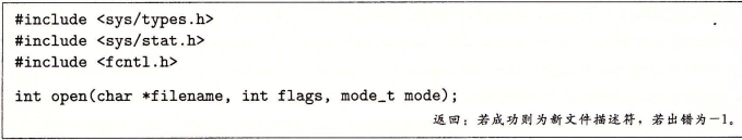 open将filename转换成一个文件描述符,并返回描述符数字,返回的描述符总是在进程中没有使用的最小描述符。flag参数指明进程打算如何访问这个文件。flag具体参数可参考上原型。