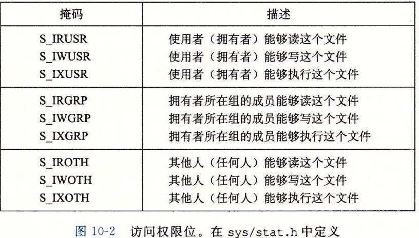 mode参数制定了新文件的访问权限位,这些位的符号名字如下图所示。
