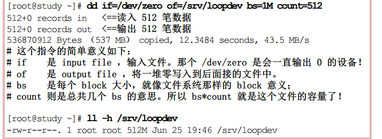 创建大文件以制作loop设备文件
