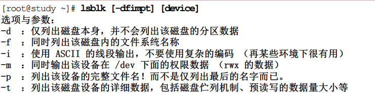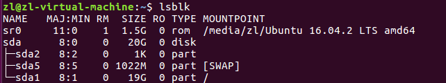 如上图,NAME:设备名称,会省略/dev等前导目录。MAJ:MIN:主要次要设备代码。RM:是否为可卸载设备,SIZE:容量。RO:是否为只读设备。TYPE:是磁盘(disk),分区(partition)还是只读存储器(rom)等,MOUNTPOINT:挂载点。