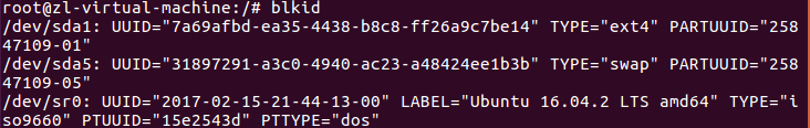 每一行代表一个文件系统,主要列出设备名称,UUID名称以及文件系统的类型。