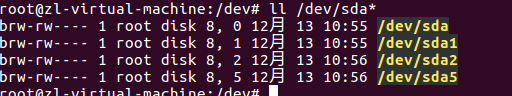上图中8为主要设备代码(major)0,1,2,5为次要设备代码(minor),linux核心认识的设备数据就是通过这两个数值来决定的。