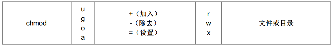 也就是九个权限分别是user、group、other三种身份,借助u、g、o代表三种身份的权限。a代表all也就是全部身份。读写的权限写成r、w、x。可以用以下的方式来更改。