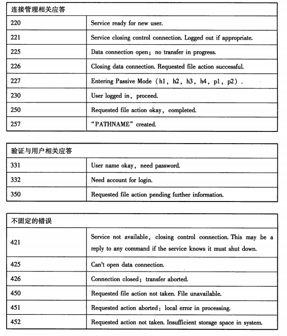 FTP控制用的连接使用的是TCP的21号端口,在TCP的21号端口上进行文件GET(RETR)、PUT(STOR)、以及文件一览等操作时,每次都会建立一个用于数据传输的TCP连接。数据的传输和文件一览表的传输正是在这个新建的连接上进行的,当数据传送完毕之后,传输数据的连接也会被断开,然后会在控制用的连接上继续进行命令或应答的处理。