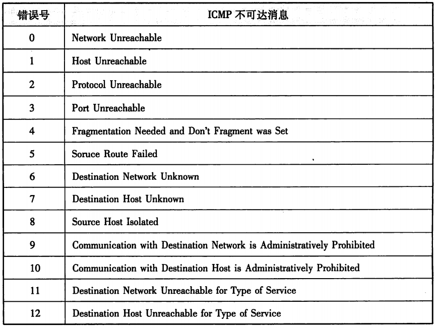 IP路由器无法将IP数据包发送给目标地址时,会给发送端主机返回一个目标不可达的ICMP消息,并在这个消息中显示不可达的具体原因。具体原因如下表: