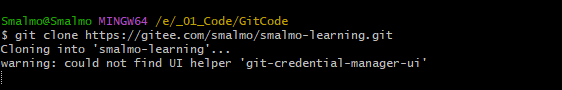 在Gitee建立仓库后,复制仓库的HTTPS连接,在本地执行git clone 命令,出现了异常warning: could not find UI helper 'git-credential-manager-ui'