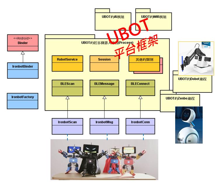 对于许多已经熟悉Android编程的学生和工程师而言,只要在学习如何使用Android的蓝芽模块、蓝芽通信协议和各厂家的机器人所独特的信息格式(Format)而已。由于各厂家的机器人产品,其蓝芽信息格式、信息封包、信息反馈路径的安排和设计,都各自发展而不一致。当您需要开发多机器人互动的情境(例如多厂家机器人一起跳芭蕾舞)时,一味开发者就需要阅读和学习好多厂家不一致的文件、源代码和范例,此外在开发工程和系统维护上,其成本也大幅提升。没关系,UBOT软件框架(平台)可以帮您解决上述的头痛问题。