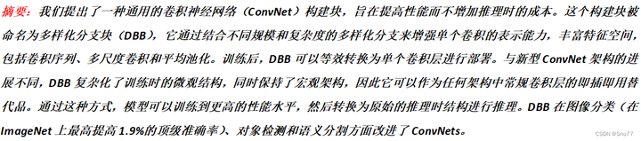 Diverse Branch Block(DBB)的基本原理是在训练阶段增加卷积层的复杂性,通过引入不同尺寸和结构的卷积分支来丰富网络的特征表示能力。我们可以将基本原理可以概括为以下几点: