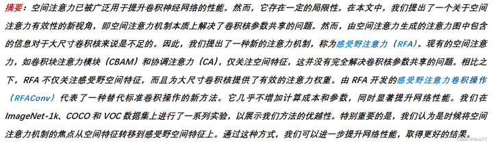 总结:RFAConv通过结合空间注意力和感受野特征的处理,为卷积神经网络提供了一种新的、更高效的方式来提取和处理图像特征,尤其是在处理复杂或大尺寸的输入时。