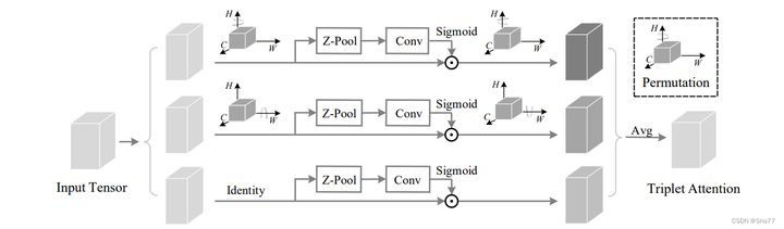 每个分支在生成注意力权重后,会对输入进行排列(Permutation),然后将三个分支的输出进行平均聚合(Avg),最终得到三重注意力输出。