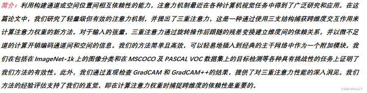 总结:通过这样的设计,三重注意力模型能够有效地捕获输入张量中的空间和通道维度之间的交互关系。这种方法使模型能够构建通道与空间位置之间的相互依赖性,提高模型对特征的理解能力。