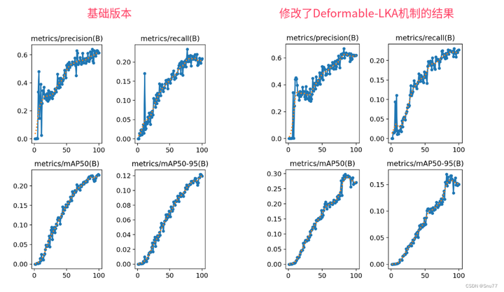 本文给大家带来的改进内容是Deformable-LKA(可变形大核注意力)。Deformable-LKA结合了大卷积核的广阔感受野和可变形卷积的灵活性,有效地处理复杂的视觉信息。这一机制通过动态调整卷积核的形状和大小来适应不同的图像特征,提高了模型对目标形状和尺寸的适应性。在YOLOv8中,Deformable-LKA可以被用于提升对小目标和不规则形状目标的检测能力,特别是在复杂背景或不同光照条件下。我进行了简单的实验,这一改进显著提高了模型mAP(提高了大概0.8左右)。Deformable-LKA,引入可以将其用在C2f和检测头中进行改进估计效果会更高,所以非常推荐大家使用。