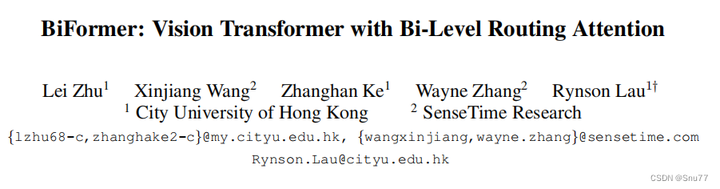 总结->引入了一种新颖的双层路由机制来改进传统的注意力机制,以适应查询并实现内容感知的稀疏模式。利用双层路由注意力作为基本构建模块,提出了一个通用的视觉Transformer模型,名为BiFormer。在包括图像分类、目标检测和语义分割在内的各种计算机视觉任务上的实验结果表明,所提出的BiFormer在相似的模型大小下显著优于基准模型的性能。