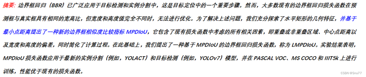 总结来说,文章通过引入MPDIoU和LMPDIoU(我又将其和Inner的思想结合了在一起形成了InnerMPDIoU双重提高了效果),提供了一种新的视角来优化目标检测中的边界框回归问题,同时通过实验验证了其在提高检测模型准确性方面的有效性。