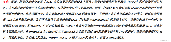 总结:大家可以将RepViT看成是MobileNet系列的改进版本
