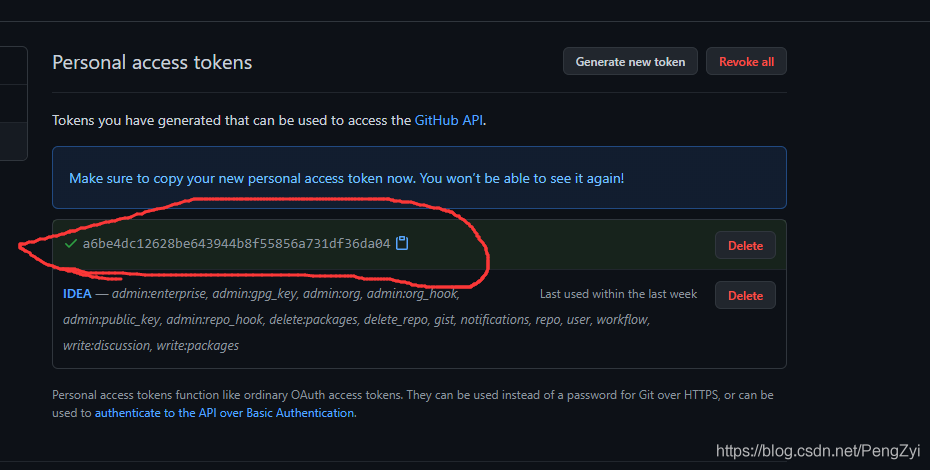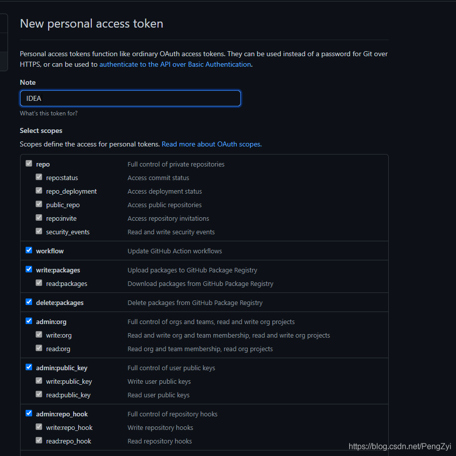 第四步,Note处填写这个token的用途,我这里写了IDEA,代表IDEA登录用。