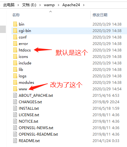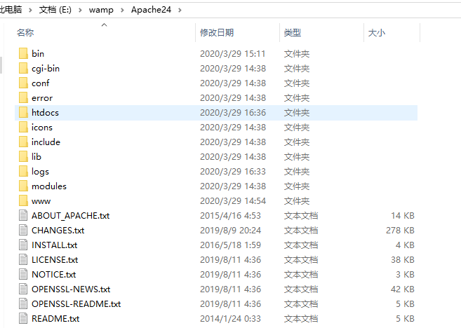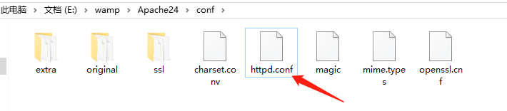 1.2 打开Apache24目录,找到conf/httpd.conf,进行配置