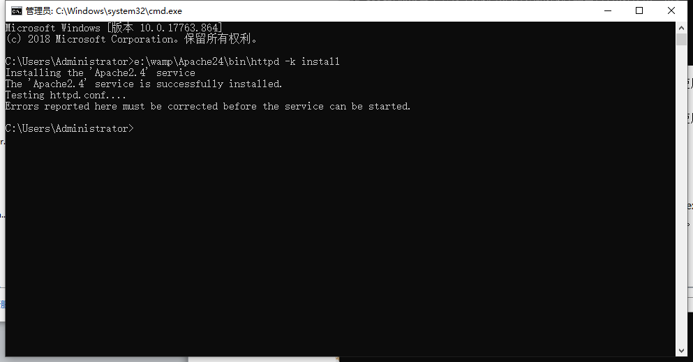 也就是将apache加入到windows的服务中,管理员权限执行httpd -k install