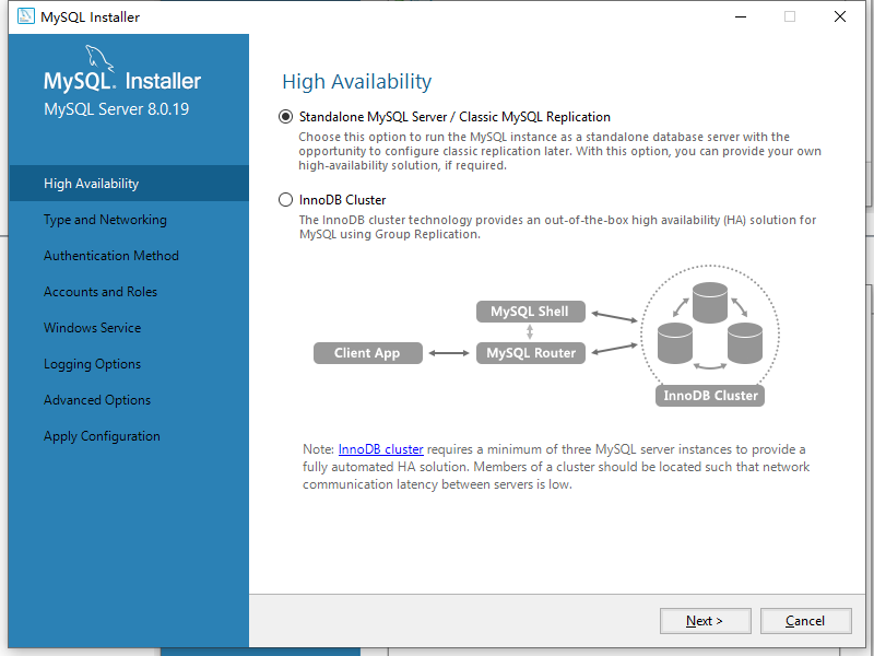 1.7 这里选第一个,因为第二个是InnoDb集群,我们开发用不到。