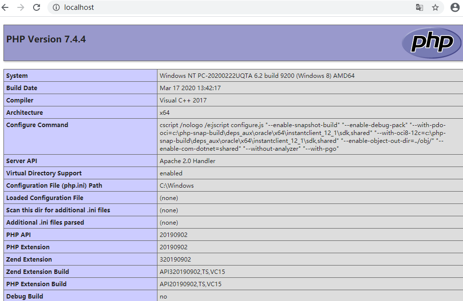 至此大功告成,在htdocs中增加一个phpinfo.php文件,内容为