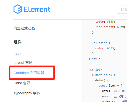 进入到element-ui官方网站: https://element.eleme.cn/#/zh-CN/component/container