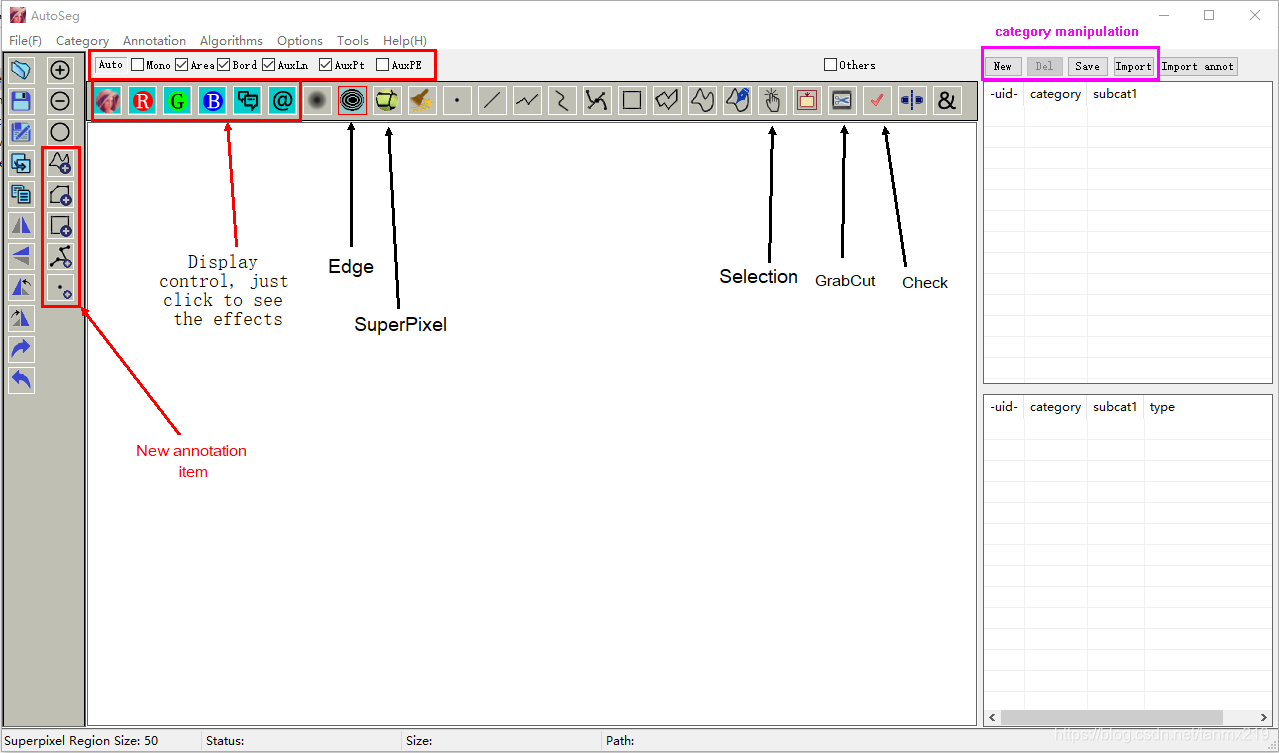 一些次常用功能(工具),如边缘(canny edge), 超像素分块(superpixels), 这些功能都很好理解,但使用相对较为复杂,不容易用好,介绍起来比较费劲了,因此我只给了个示意动画(因为文件有些大,此处无法上传,请到github上下载),有时间再在这里详细补充。