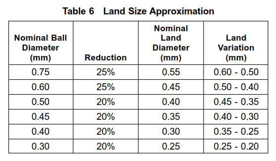 PCB_IPC7085中关于BGA引脚焊盘直径与引脚间距的关系