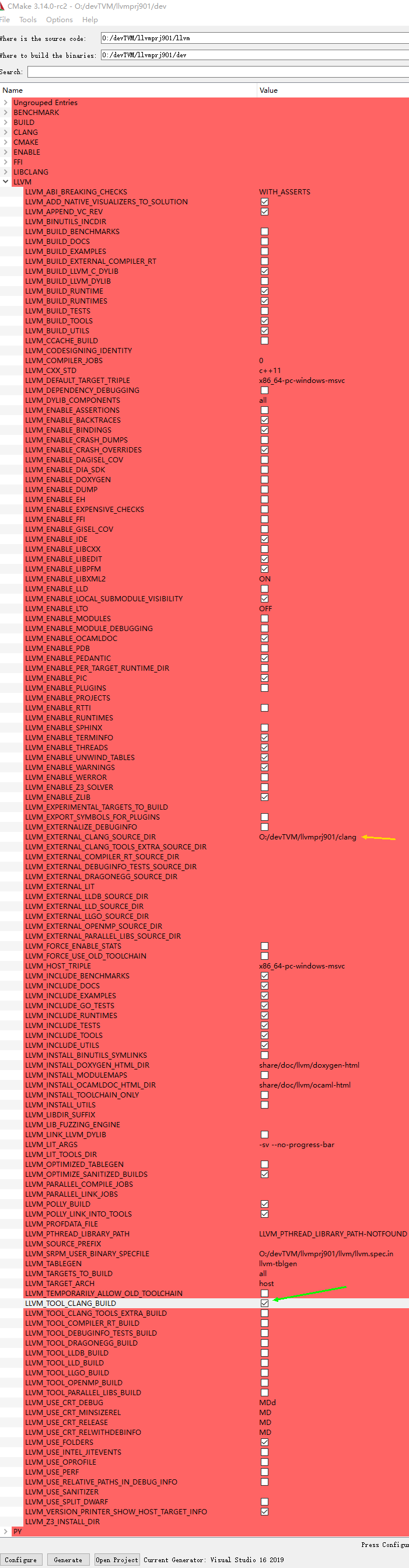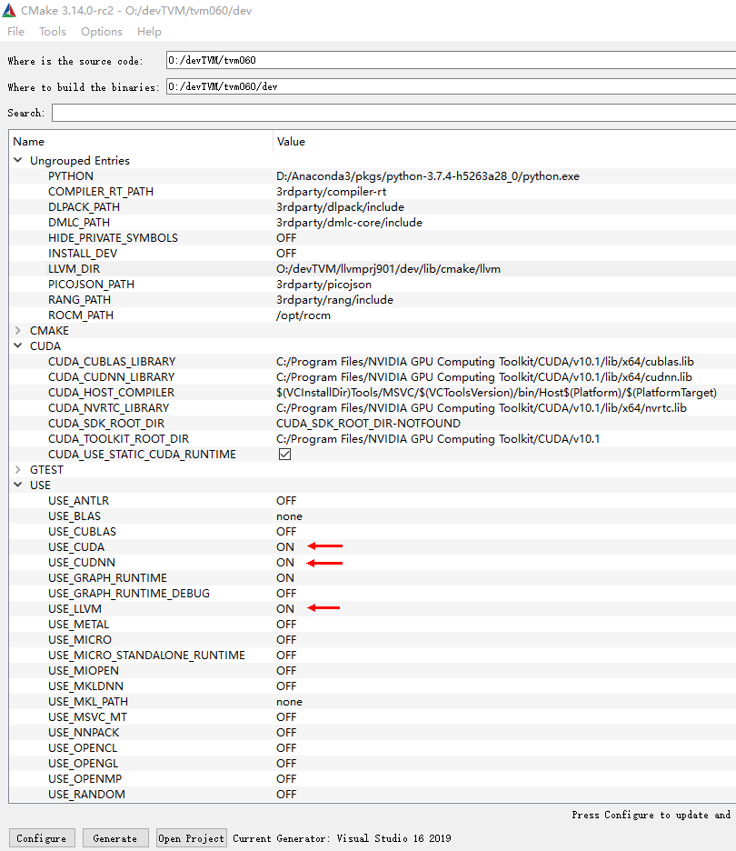 目前还没有时间去探究里面的任何问题,就贴个cmake-gui编译的图,记录一下吧。其他版本碰到的问题实在太多了,后续有时间研究的话再来唠几句。
