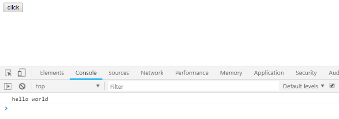 <button id="btn">click</button> <script> function foo(){ console.log('hello world'); } btn.onclick = function(){ foo(); }; </script>