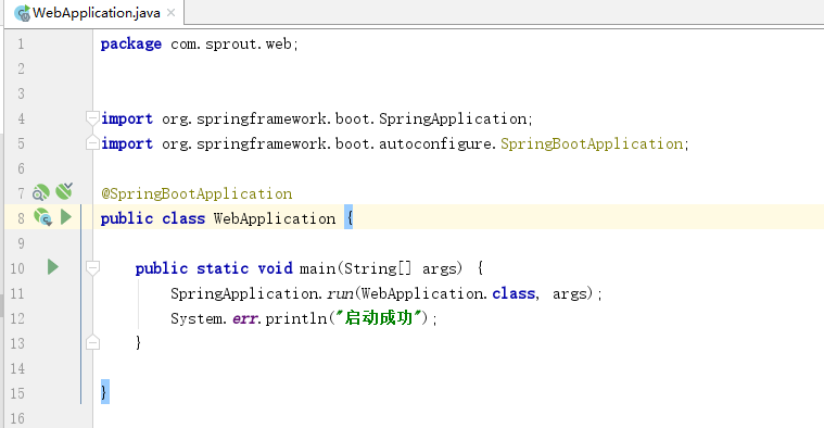 然后就可以到WebApplication类右键启动程序,也可以右上角启动