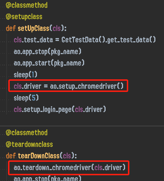 @setUpClass 装饰器为测试类的setup装饰器,将在每个测试用例类执行前执行一次,可以用于进行测试前置操作。