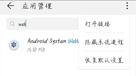 查看测试手机的 设置 -> 应用 -> 应用管理 -> Android System WebView(部分手机需要打开显示系统进程才能看见)查看ChromeDriver版本信息,如图所示。