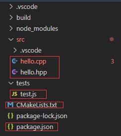 addon模块通过cmake-js进行编译,所以需要添加CMakeLists.txt,里面写入cmake-js需要的信息,可以通过npm install --save-dev cmake-js@5.2.0 来安装本地的cmake-js
