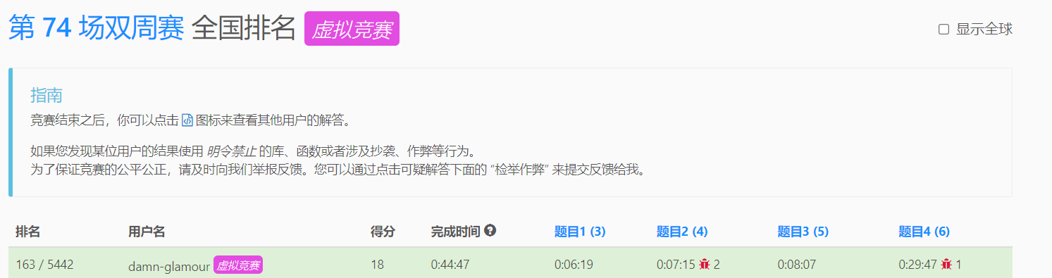 【2022/03/19-第74场双周赛】复盘