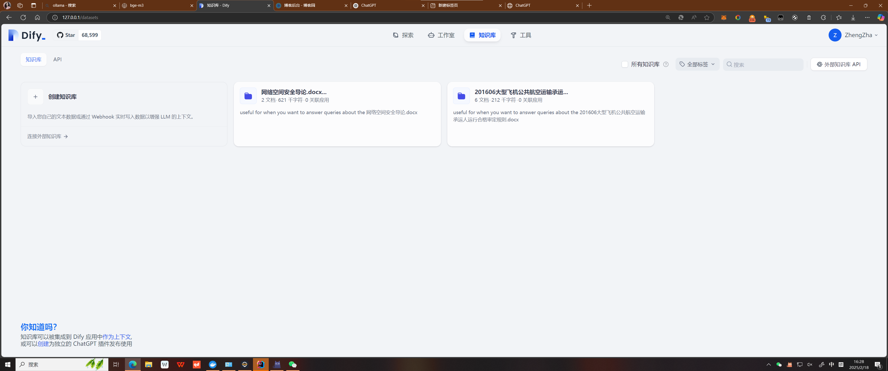 - 按照上面那个RAG部署的视频一步一步往下做,最后长这样