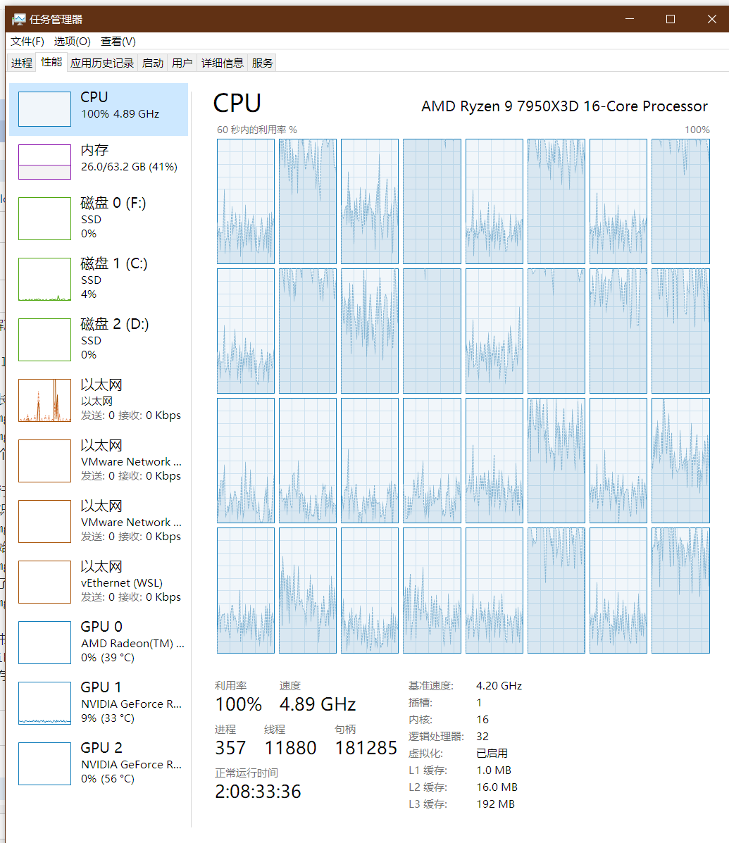 - 如果按照显存大小和模型对应关系来说的话应该是成了,直接把token改成了32768,32B的模型都爆显存了,7950搁这算了半天,直接100%